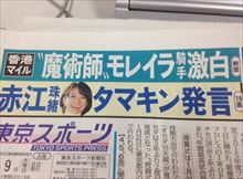 (赤江珠緒)ちょっと!あのね、大竹さんのせいでね、今日ね、東京スポーツさんの一面に載っちゃったんだから。もう、本当に恥ずかしい。もう。