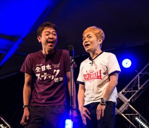 (宇多丸)ありがとうございますよ。もう本当にどのアクトも素晴らしくてということで。お越しいただいたみなさん、ありがとうございます。あ、そうですね。TBSラジオ絡みで言えばですね、『たまむすび』でもおなじみ玉袋筋太郎さんと水道橋博士の浅草キッドさん。かれこれ3年ぶりの漫才ということになるらしいんですけど、RHYMESTERを呼び込む漫才をしていただいて。これは本当にもう、玉さんと飲むようになってからずーっと「とにかく漫才をやる機会があんまりなくなっちゃって。それが悩みだ」みたいなことを言っていて。前だったらね、高田笑学校とかあったんですけどということで。「じゃあ僕が、とりあえず肩慣らしみたいなことでいいんで。僕らのライブにお呼びしてもいいですか?」みたいなことを前から言っていたんですけど、それがついに実現して。